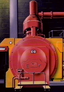 The Slime Blower is one of the least used pieces of equipment due to the scarcity of the weapon's ammunition, positively charged Psychomagnetheric Ectoplasm. The Pyschomagnetheric Ectoplasm was first discovered in 1988 after an incident involving the Ghostbusters' first customer Dana Barrett. An examination of a street where she lived revealed a large quantity of the unusual Ectoplasm. Further exploration revealed the large quantity of slime flowed along the abandoned tunnels of the NYPRR. The New York Pneumatic Railroad, a system that had been an experimental subway system. After collecting a sample it was discovered that the slime reacted to negative vibes, having built up from all of the bad feelings and negative things said by every New Yorker to each other. After a complex series of tests it was discovered that the slime, like Proton streams, can be changed from negative to positive, and so positively charged slime was implemented in the Ghostbusters' arsenal. The slime was playing a part in the 300-year-old plan of a 17th Century Moldavian Tyrant known as Vigo the Carpathian. Utilizing the negative feelings of some "three million completely miserable assholes" Vigo was able to amass a huge amount of slime, which he used to coat the Manhattan Museum of Art, trapping Dana Barrett and her son Oscar who was to play an important part in Vigo's plan, to be the living embodiment of Vigo the Carpathian. However Vigo was eventually defeated through the use of his own slime being used against him.