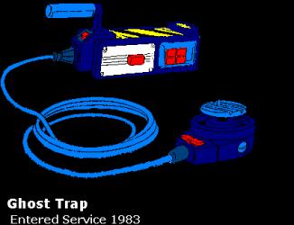 The Trap is an Electromagnetic Field Generator that is encased in an extremely strong and powerful Steel Grid and the EMF draws ghosts into the trap. The Trap is connected to a six to eight feet cable, which is connected to a "Stomp-on Pedal". The Cable Wire can be worn on a tiny hook/notch on the standard issue pistol belt. The ghost trap is operated as follows, one team member holds the spirit in a confinement stream, and a second team member rolls a standard Ghost Trap under the spirit. The Trap operator must shout "Trap Open!" He then activates the Stomp-on Pedal, activating the first stage if the trap. The Trap, now open is ready to receive the ghostly prisoner. The Trap operator then presses the Stomp-on Pedal once more to activate the EMF, the ghost is then sucked into the Trap and the Trap is then closed by removal of the Trap operator's foot from the pedal. The Trap also runs on a rechargeable battery that lasts up to 48 Hours. So after trapping a ghost, be sure to get to the division headquarters as soon as possible, so you can contain the ghost in the Ecto Containment Unit and recharge the Trap's battery.