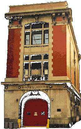 Formerly the base of the FDNY Hook & Ladder #8, the building became abandoned and went up for sale. The structure was built around the turn of the century (Around 1912.) and was built to a style widely used for firehouses during that time. The building features three floors and a basement, a full vehicle repair area, office and recreation space and fully fitted kitchen/bedroom and bathroom. The Firehouse features four brass poles, a left over alarm system and original engine doors complete with motors. In 1989/1990 the Firehouse is declared a Historic Monument after new records surfaced over it's former fire company helping prevent a ghost invasion in 1959. (It's About Time)
