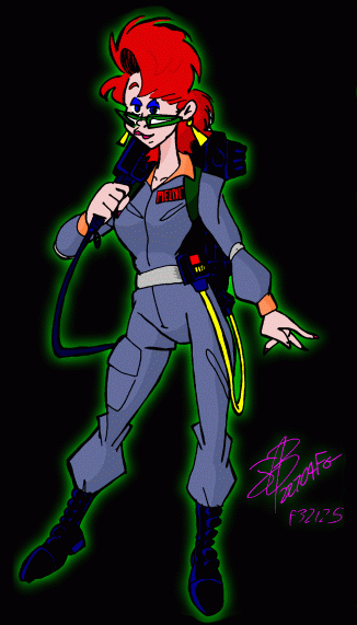 Has at least one flapper costume in her closet. Used it to pose as Cody Jarrett's gun mol (Certainly doesn't mind "posing" as Egon's partner.). Usually dresses like a clown on Halloween (Hmm... and Egon sounded like a clown expert in RGB #24...). (RGB 3-D Annual, RGB #7, #8)